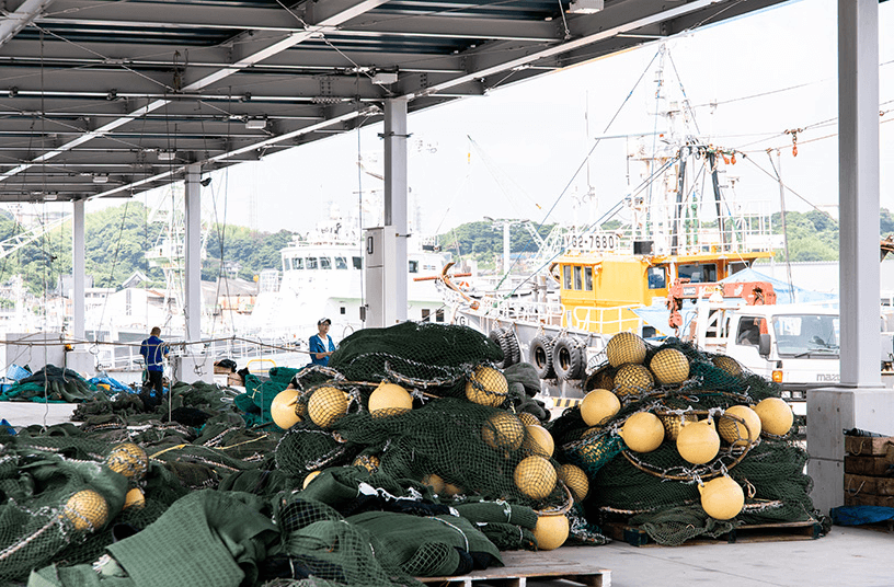 沖合底曳網漁業・大中型まき網漁業の各水産会社様、山口・福岡・佐賀・長崎北部沿岸の各漁業協同組合・漁業者様向けに、船具、漁具等水産資材を納入しています。